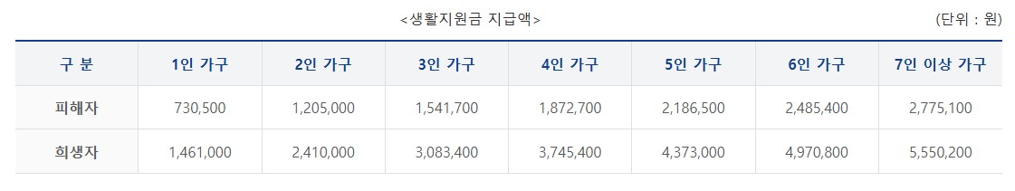 - 3) 동 참사로 인해 신체적ㆍ정신적ㆍ경제적 피해를 입어 회복이 필요한 사람