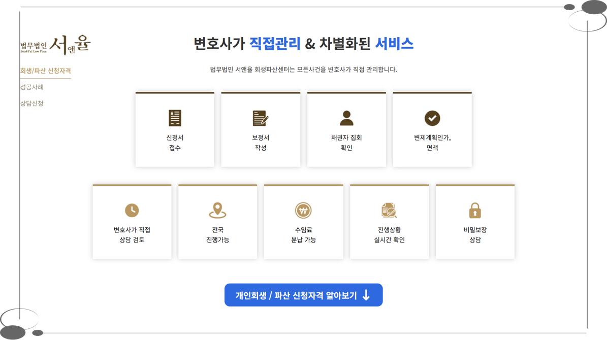 법무법인 서앤율은 수년간의 성공 경험을 기반으로 개인회생·개인파산 전문 법률 서비스를 제공하며