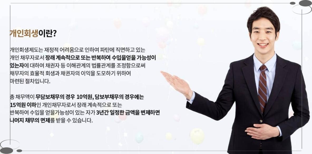 지속적으로 소득이 있는 개인이 3년 동안 일정 금액만 변제하면 최대 90%까지 채무를 탕감받을 수 있는 제도입니다.