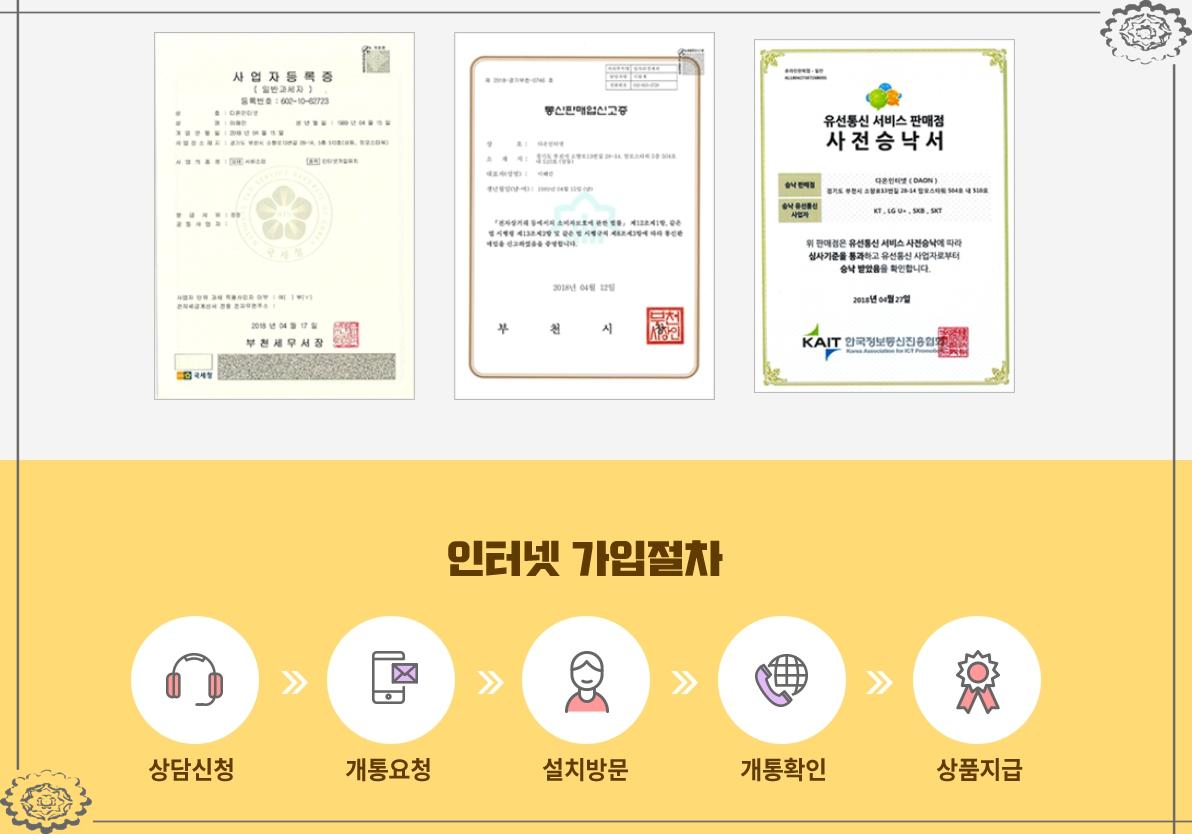 한국정보통신진흥협회(KAIT) 공식 인증 대리점인 다온인터넷을 꼭 확인하세요.